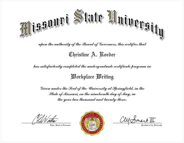 May 19 2023 Workplace Writing Missouri State University issues digital credentials with Parchment. Click to verify my Certificate and see more about my accomplishment.