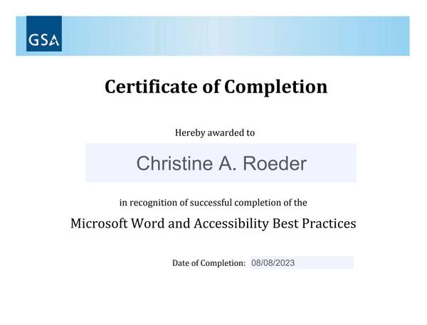August 8 2023 GSA Section 508 MS Word and Accessibility Best Practices General Services Administration, Section508.gov: https://www.section508.gov/training-home/